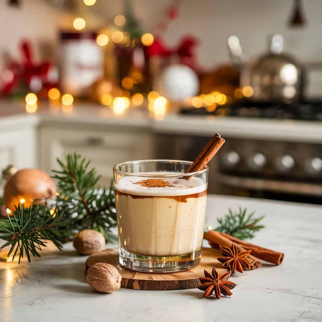 For garnish, a lime wedge or a tiny gingerbread cookie on the rim is just fun. It makes the drink feel like a treat.
