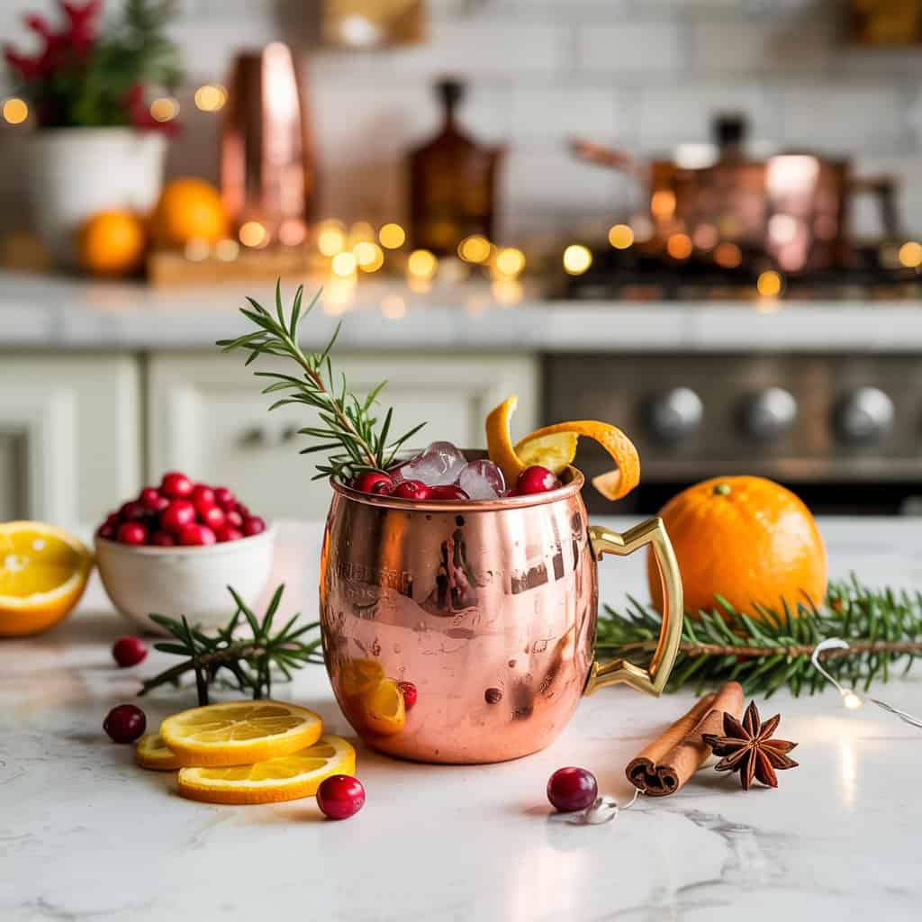 The mug keeps it super cold, and honestly, it just looks cool. For garnish, I’ll use an orange slice, toss in a couple of fresh cranberries, and maybe a sprig of mint if I’ve got it handy.