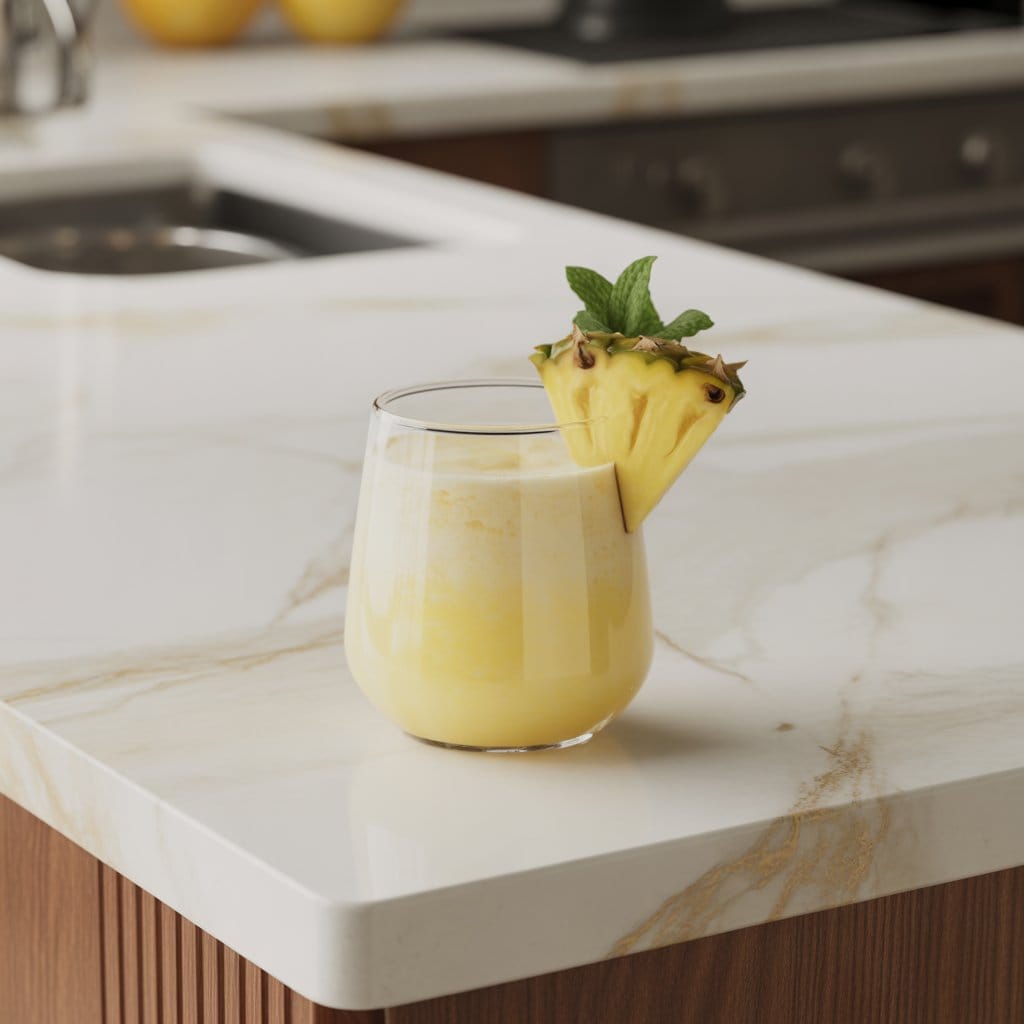 I use pineapple juice and coconut water as the base. Coconut water keeps it hydrating and balances out the sharpness of the pineapple. Sometimes I’ll add a splash of lemon juice if I want it even brighter.