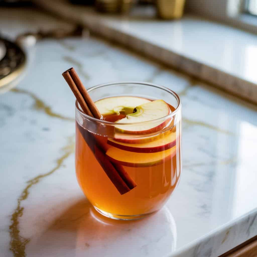 Clear glasses show off that golden color. A cinnamon stick or apple slice on the rim is easy but looks great.
