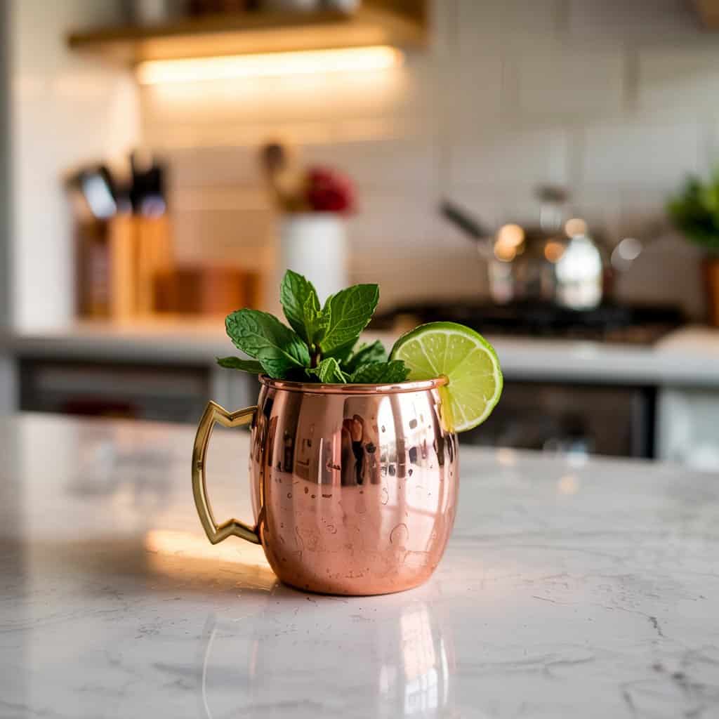 The copper mug keeps the drink cold, but honestly, any glass will do if you don’t have one.