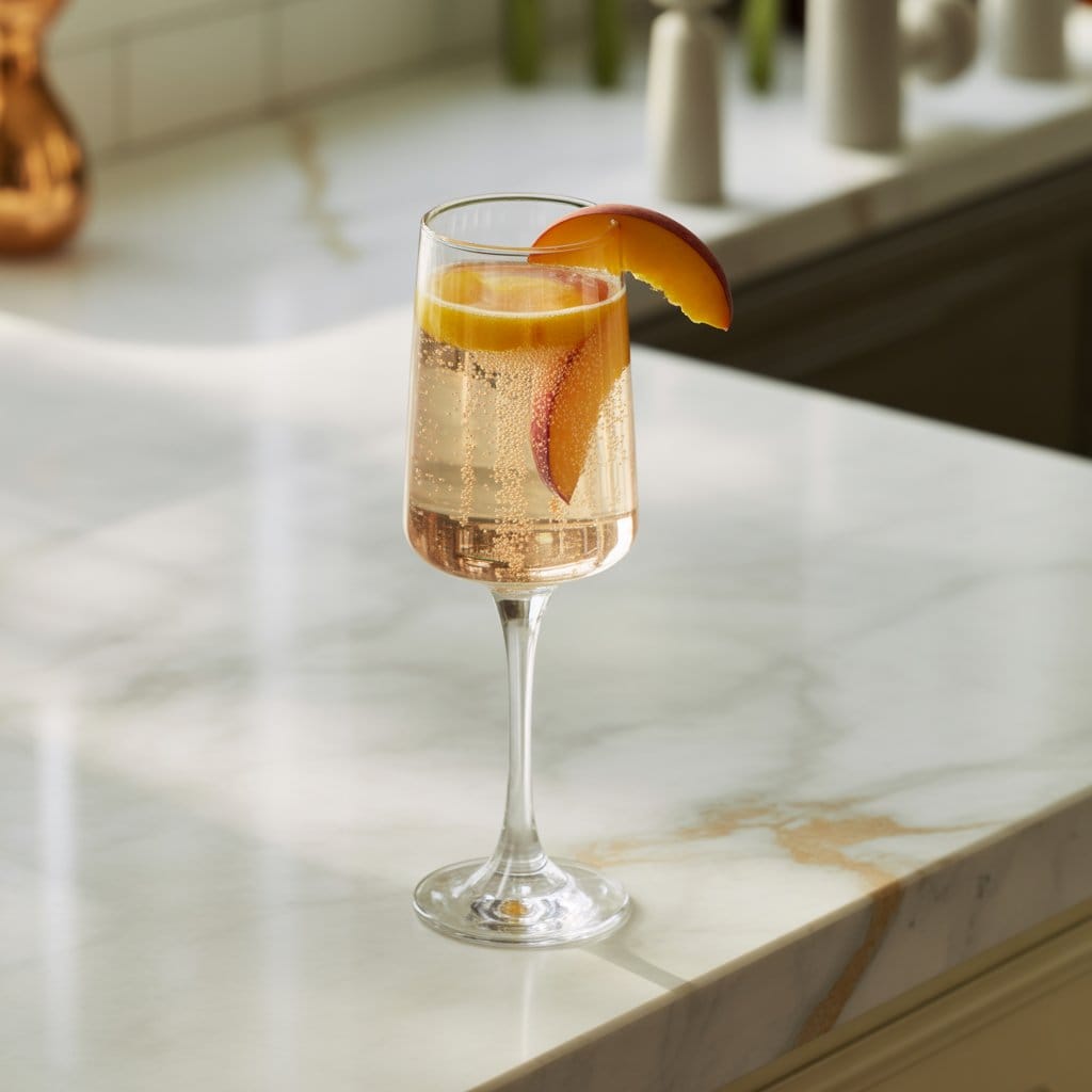 I usually reach for a dry Prosecco so the drink doesn’t end up too sweet. If you’re buying peach nectar, check the label for real fruit content—it really does taste better. And fresh peach slices? They smell great in the glass.